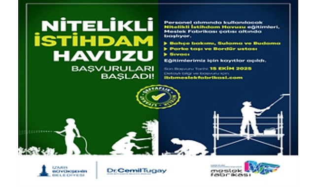 İzmir Büyükşehir Belediyesi, personel alımlarında yeni bir sistem başlatıyor. Meslek Fabrikası’nın bazı branşlarındaki eğitimleri başarıyla tamamlayan kursiyerler, artık Nitelikli İstihdam Havuzu’na dahil edilecek. Personel ihtiyacı oluştuğunda işe alım süreçleri bu havuz üzerinden objektif kriterlerle yürütülecek. Yeni başlatılacak eğitimler için son başvuru tarihi ise 15 Ekim olarak belirlendi.