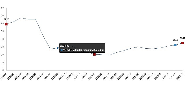 YD-ÜFE yıllık değişim oranları (%), Ocak 2026